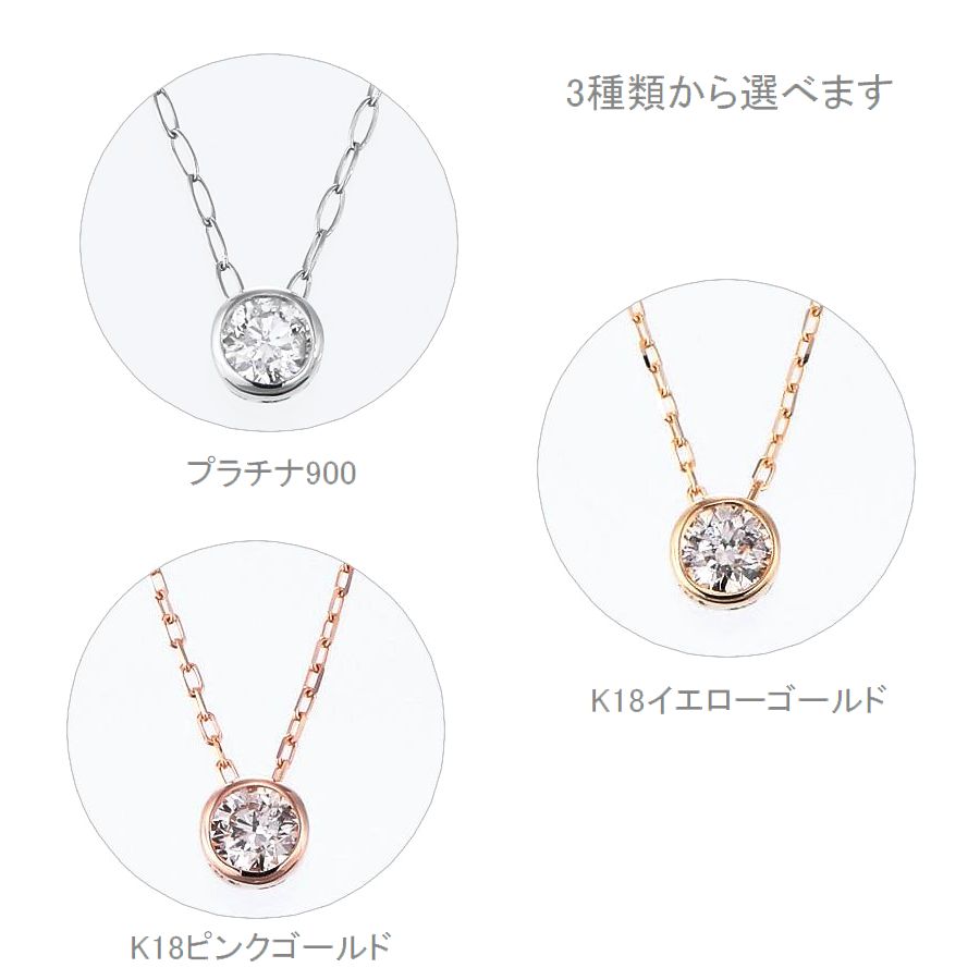 | Pt900/K18イエロー/K18ピンクゴールド 0.08ct ダイヤ一粒ネックレス |