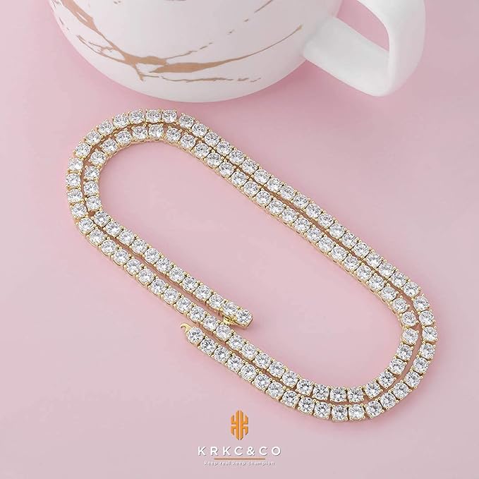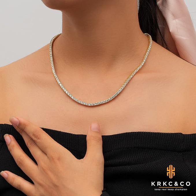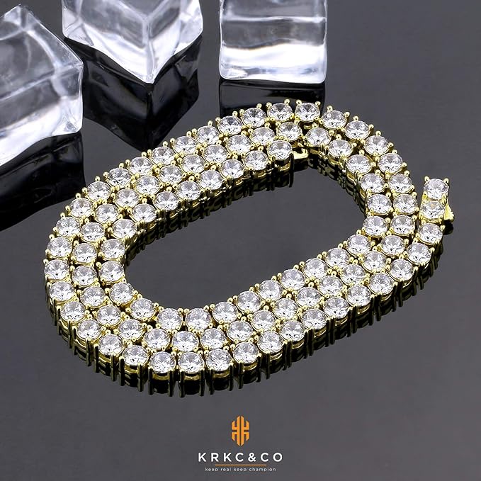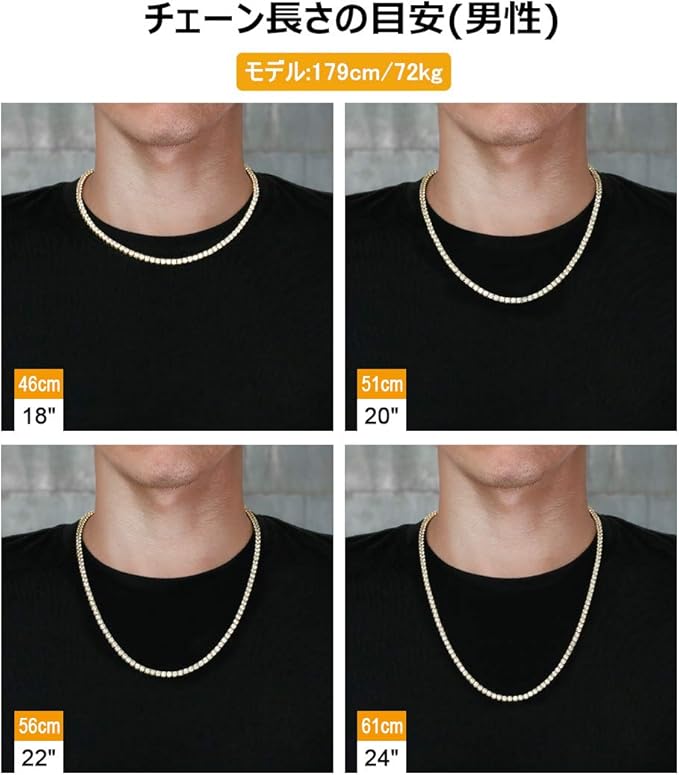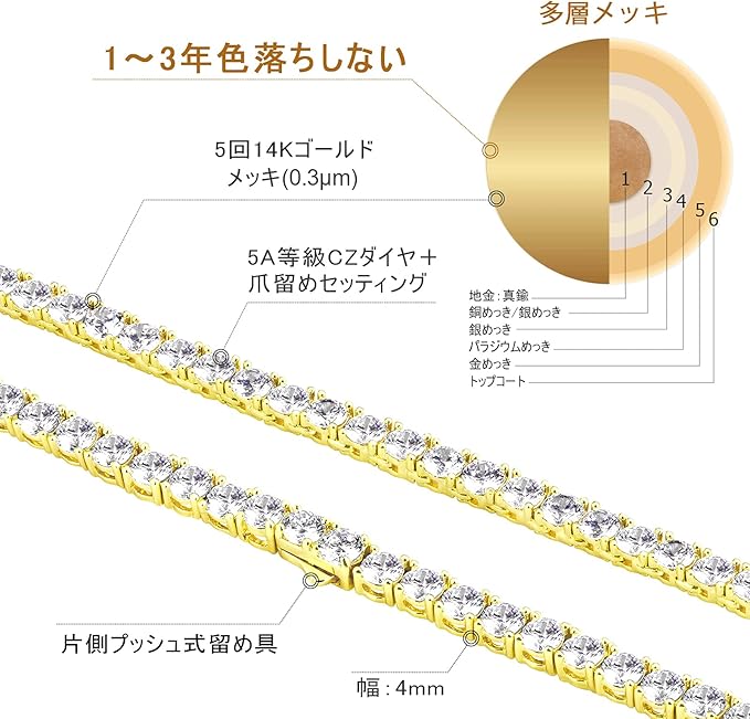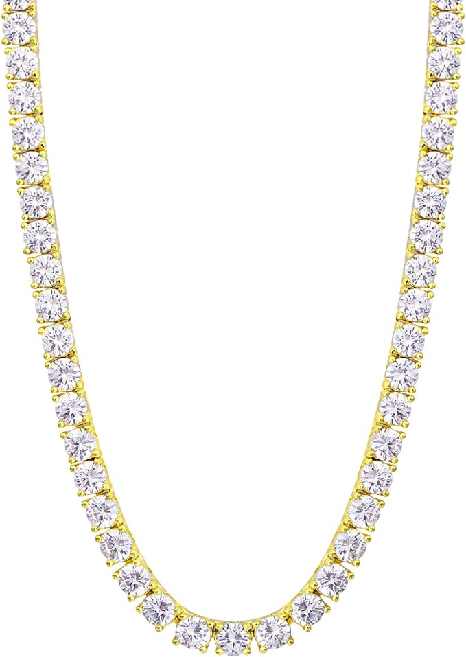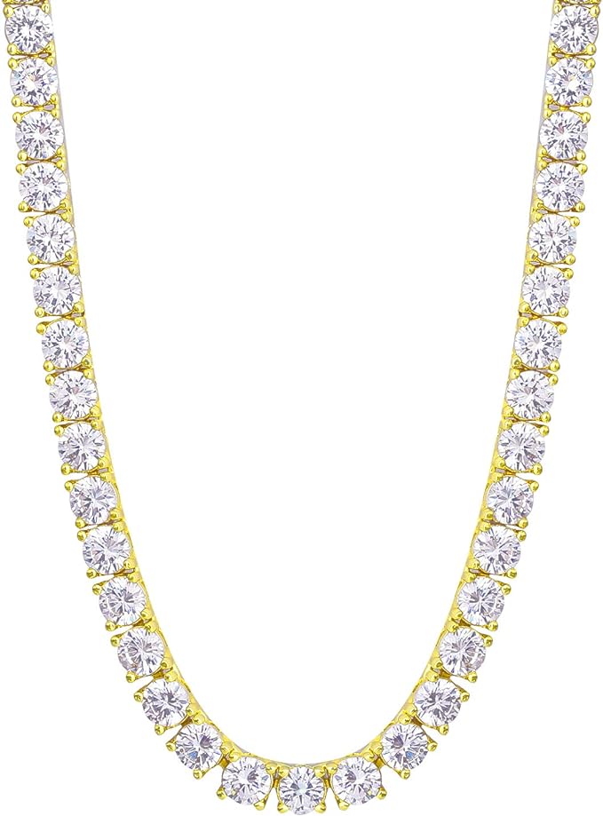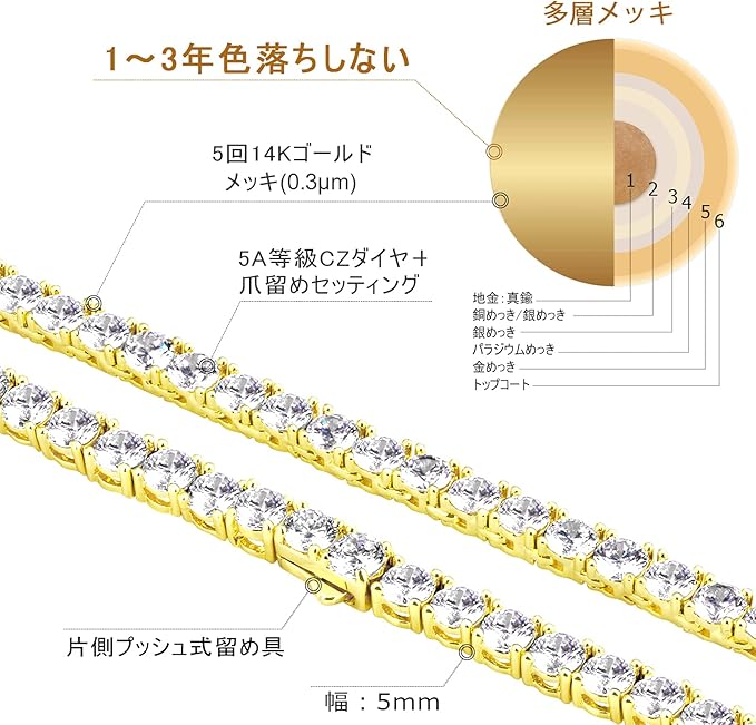 テニスチェーン テニスネックレス 幅3/4/5mm CZダイヤ 14K金メッキ メンズ レディース チェーンネックレス ジルコニア