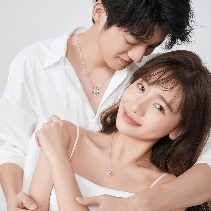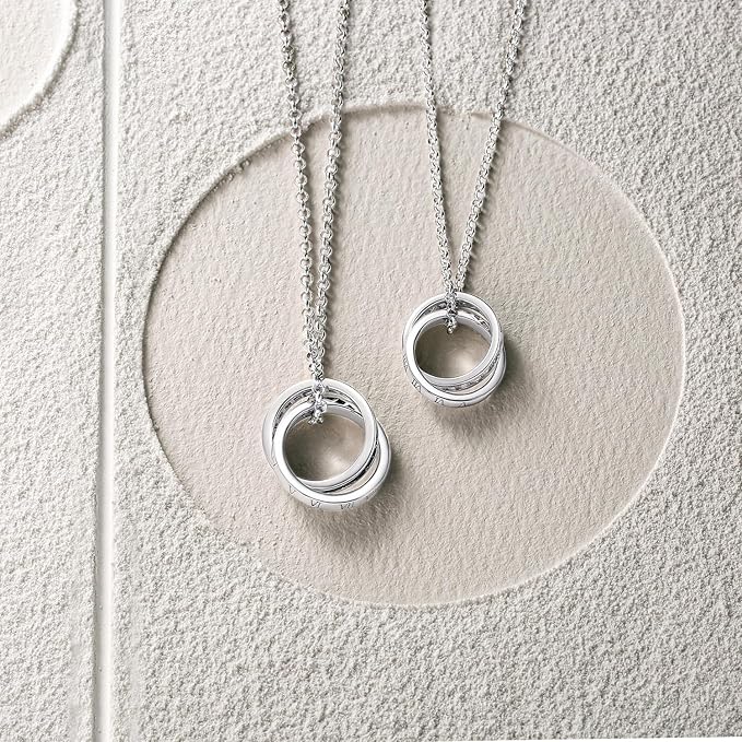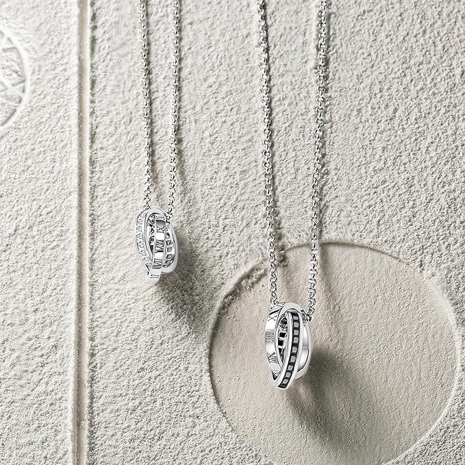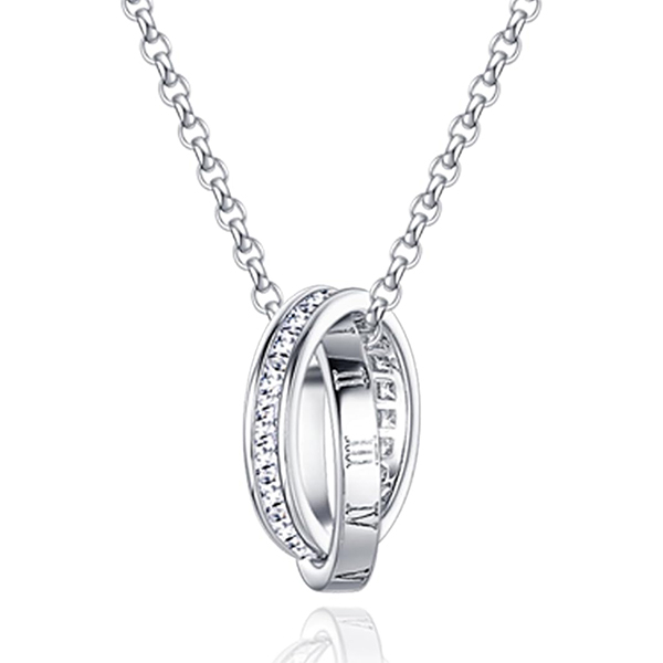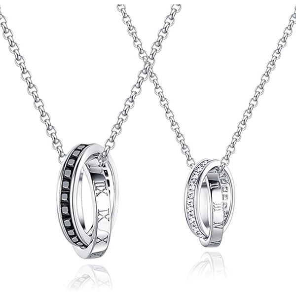 説明 クラシックなダブルリングのデザインには、時計のローマ数字の要素が取り入れられており、恋人たちが未来のどの時点でも出会う運命にあることを意味している。カップルの永遠の愛を表現しています。華やかなジルコニアを丁寧にはめ込み、シンプルさとエレガンスを兼ね備え、素早く華やかな印象を与えるネックレスです。