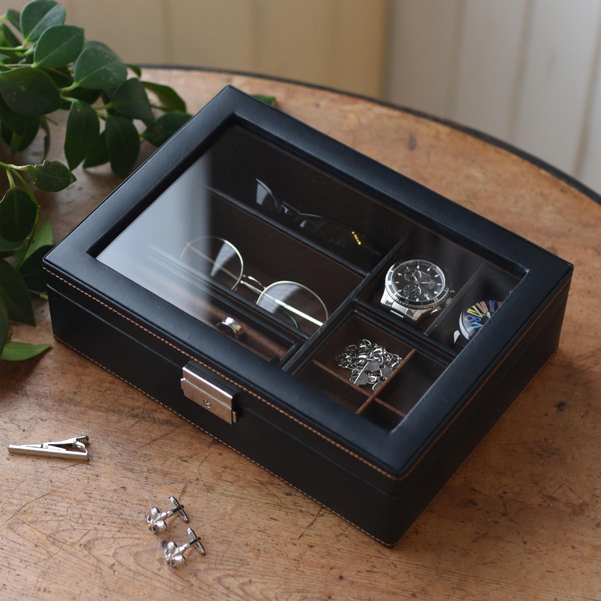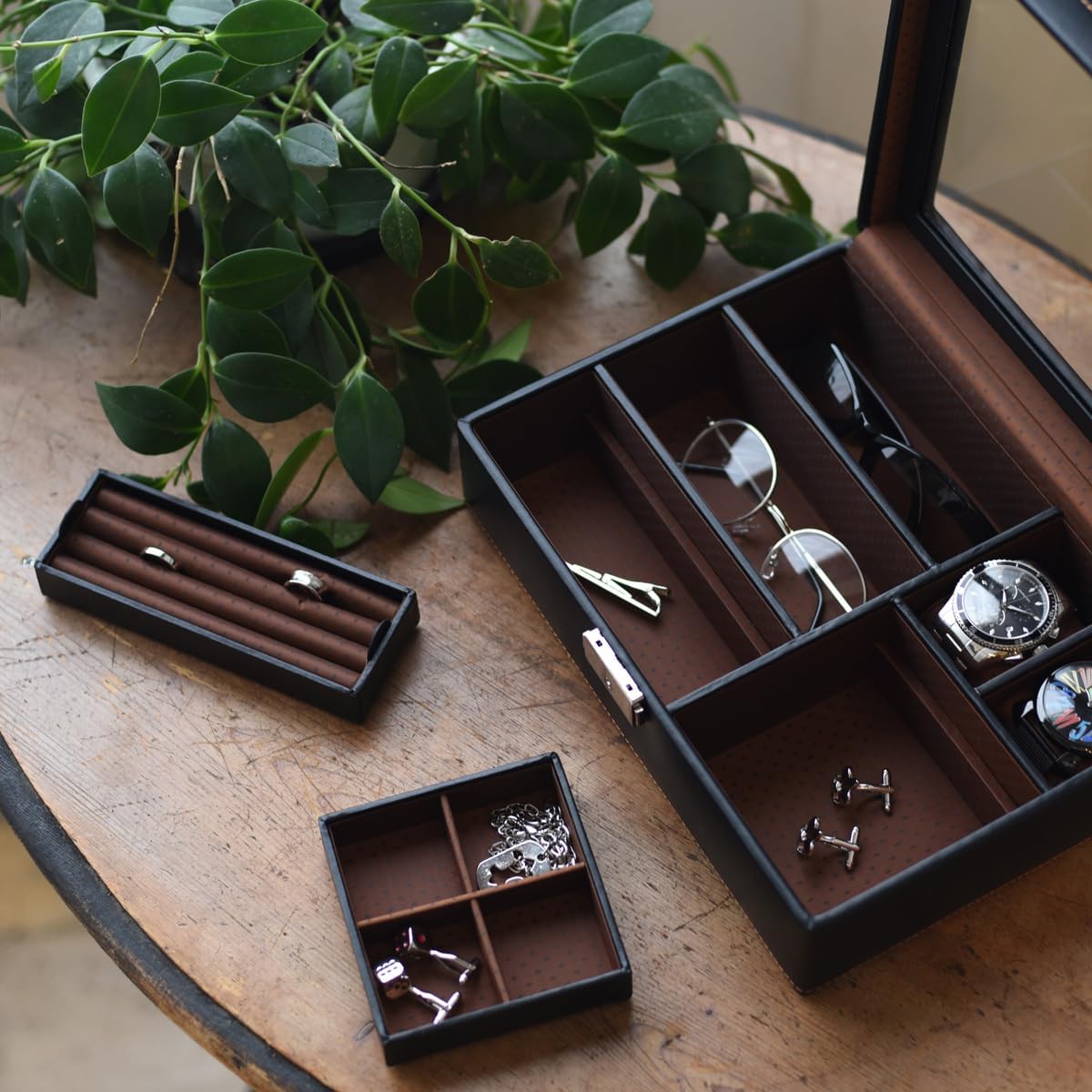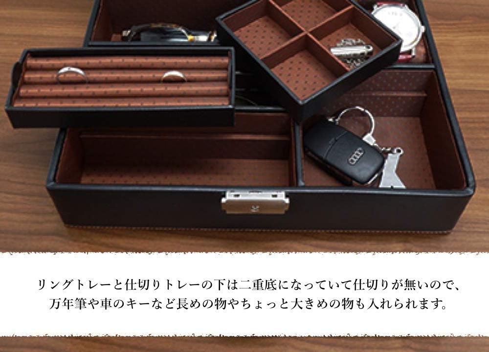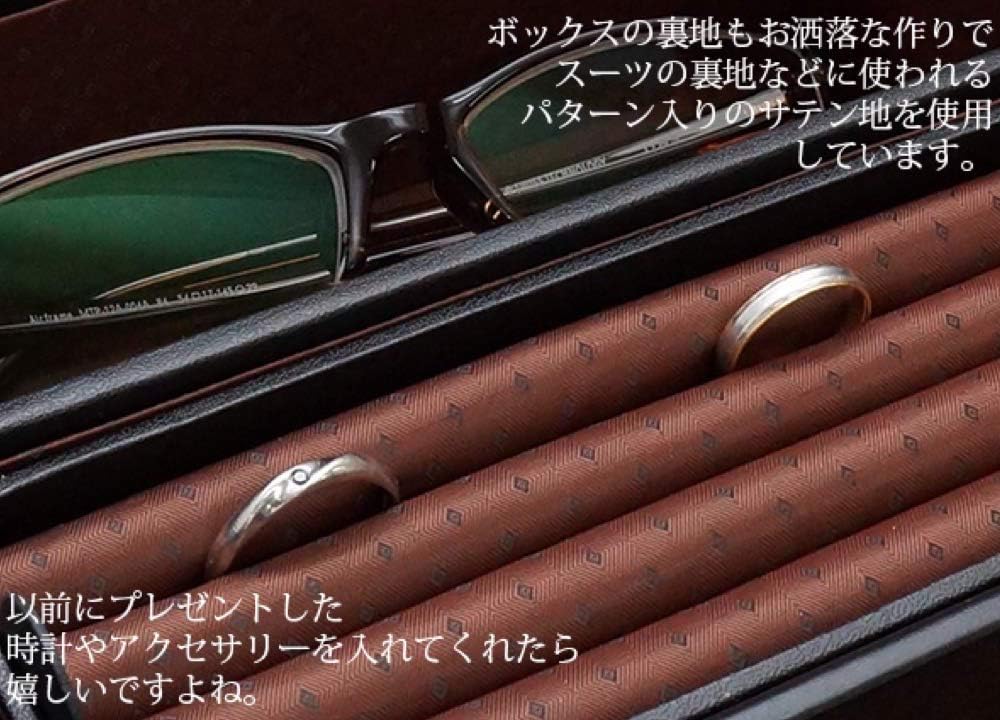 | 説明 | 大切な方の記念日に!レザー調男性用ジュエリーボックス ”お父さんの宝箱”・・・お父さんなど男性向けのお祝いプレゼントで、かっこいいモノとなると悩まれる方も多いですよね。そこで時計や眼鏡、アクセサリー、キーホルダーなど色々入るメンズジュエリーケースはいかがでしょうか?以前にプレゼントしたものや若い頃から大切にしているものを、この宝箱に入れてくれたら嬉しいですよね。大事なお祝いのプレゼントをお探しの方へ是非ともオススメです! |