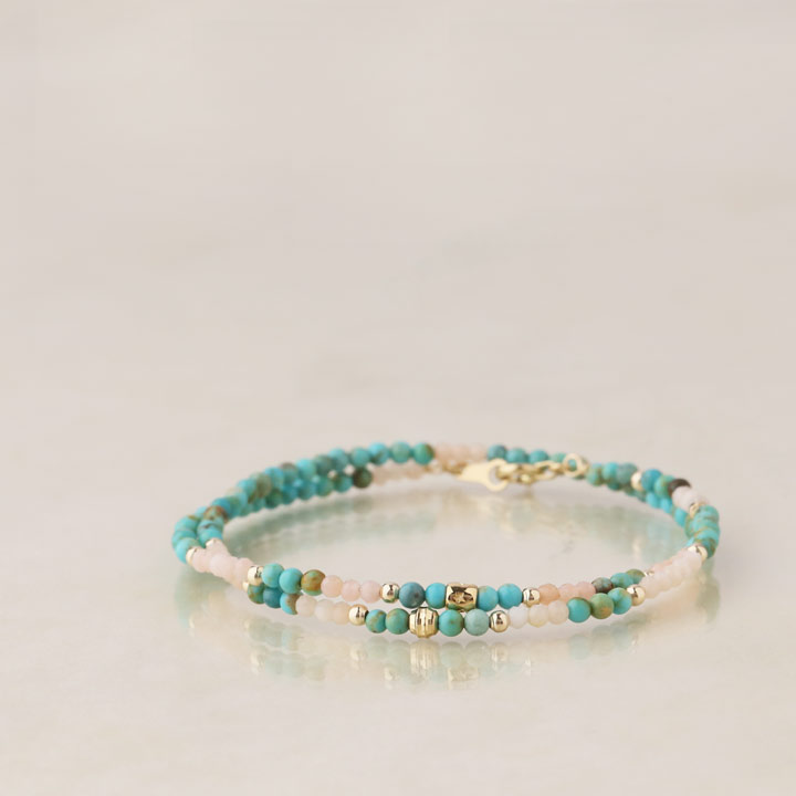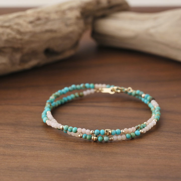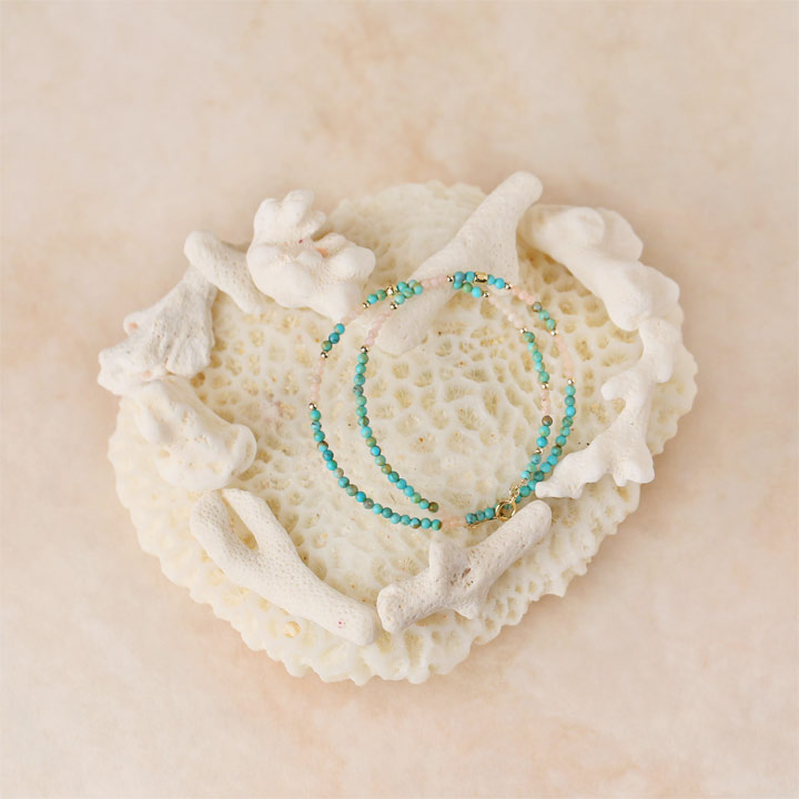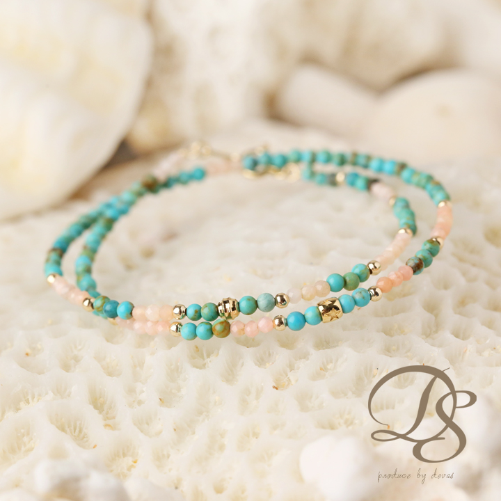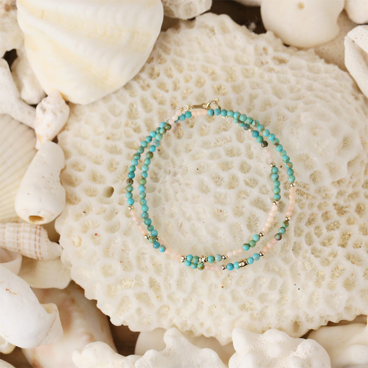 | 素材について | [天然石] ターコイズ、ピンクオパール [K18ゴールド] 星パーツ(1個)、カットボールパーツ(1個)、引き輪、プレート、丸カン、アジャスター [K14ゴールド] 小さいボールパーツ(14個) [ステンレス] ワイヤー※天然石は色味やサイズなど個体差がありますが、一つ一つ異なる天然素材ならではの風合いとしてお楽しみくださいませ。 |