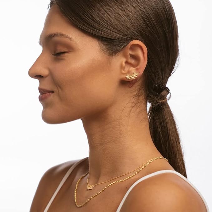 • シンプルなリーフをあしらった立体的なピアスです。耳のラインに添うように作られています。エレガントでカジュアルからきれいめな装いのアクセントまで、幅広く身に着けられる一品です。